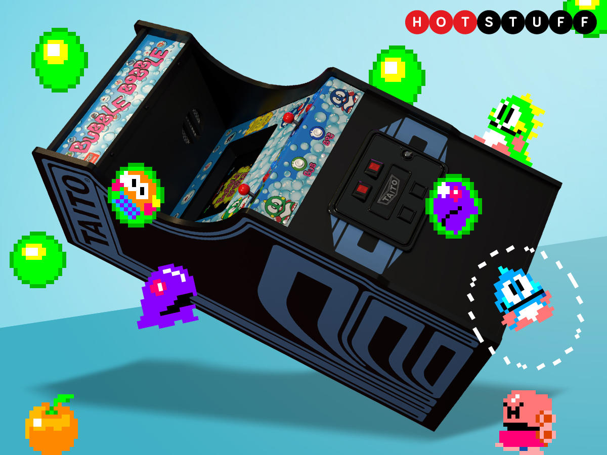 En 1986, Bobble Bobble vous invitaient à « faire un voyage dans la grotte des monstres » pour le meilleur classique d’arcade à deux joueurs du jeu vidéo. La plate-forme coopérative de ce titre n’a cependant pas été entièrement oubliée – voyez Bubble Bobble 4 Friends pour Switch de 2019 – mais si vous voulez un avant-goût de l’original, Quarter Arcades Bubble Bobble est un meilleur pari. Cette cabine au format bureau exécute la ROM d’origine et est logée dans une réplique entièrement jouable de la cabine d’arcade Bubble Bobble des années 1980. L’accès par interrupteur DIP vous permet de jouer avec les paramètres du jeu, et une batterie interne signifie que vous pouvez jouer au jeu en déplacement. En quelque sorte, en tout cas.