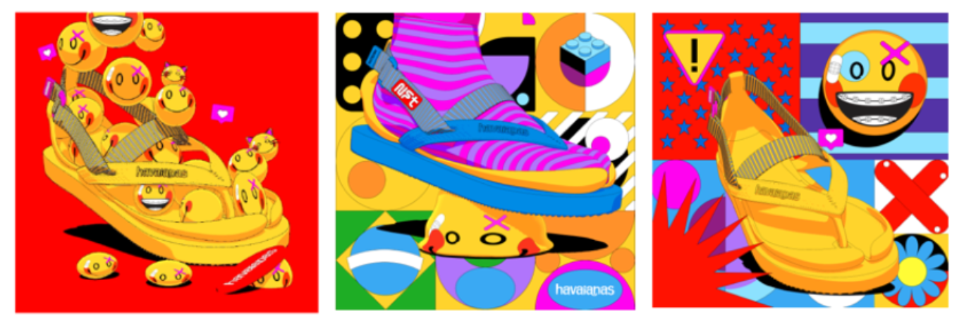 La collection virtuelle NFT by Havaianas présentera cinq œuvres d’art sous une forme inédite qui n’existe pas encore dans le monde physique. Toutes les oeuvres ont été inspirées par le bonheur : Happy Feet ; A Step to Happiness ; Happy Citizen ; Happy Spring ; Happy Heels. “Mon intention est de faire sourire les gens au milieu de ce monde chaotique. Il ne s’agit pas d’essayer de lutter contre le chaos, mais de voir le bon côté des choses en essayant de saisir les opportunités”, a déclaré Batista.