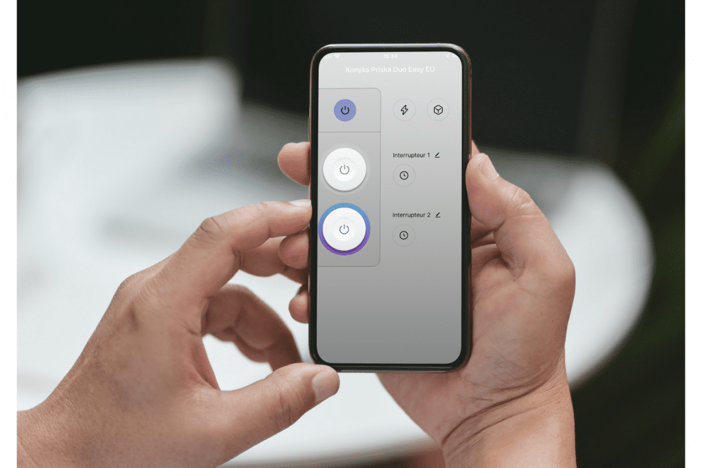 Avec la prise Priska Duo Easy EU, Konyks étend sa gamme de produits équipés des technologies WiFi et Bluetooth. L’ajout du Bluetooth garantit une installation rapide dans l’application gratuite Konyks qui détecte automatiquement le nouveau produit et vous guide pas à pas.