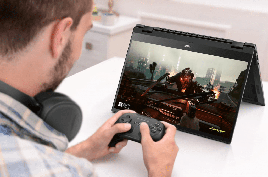 L’offre d’Asus, le Chromebook Vibe CX55 Flip, a un écran plus petit de 15,6 pouces, 1080p, mais pousse les taux de rafraîchissement encore plus élevés à 144 Hz. C’est aussi un cabriolet, pour quand vous préférez vous détendre et regarder quelque chose plutôt que de commencer votre jeu. Il atterrira avec un choix de processeurs Intel i3, i5 et i7 de 11e génération, jusqu’à 16 Go de RAM.