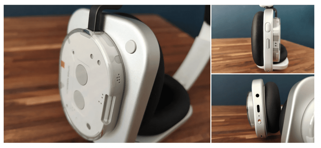 Ouvrez la boîte et vous trouverez le Headphones 1 niché dans son étui de transport rigide fourni, assez grand mais suffisamment fin pour se glisser facilement dans un sac à dos. Il est doté d’une poche en filet pour ranger tous les câbles dont vous pourriez avoir besoin. Des ports USB-C et 3,5 mm sont inclus pour la charge et l’écoute analogique ; vous trouverez les ports pour les deux sur l’écouteur droit, à côté du bouton marche/arrêt.
