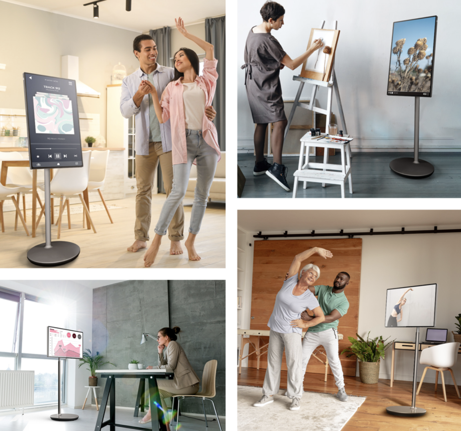 La Go Plus Pro reprend les atouts de la Go Plus dans un format plus compact, avec un écran tactile de 27 pouces, disponible en version Full-HD pour les loisirs (27FE7M45) ou en Ultra-HD (27UE7M45) pour un usage plus professionnel. Son design soigné aux lignes arrondies intègre une caméra pour la visioconférence et un caisson de basse discret placé au-dessus du pied. Fonctionnant sous Android 14, la Go Plus Pro est montée sur roulettes et affiche une autonomie de 4 heures sur batterie. Elle combine mobilité, connectivité et performance pour s’adapter à tous les environnements.