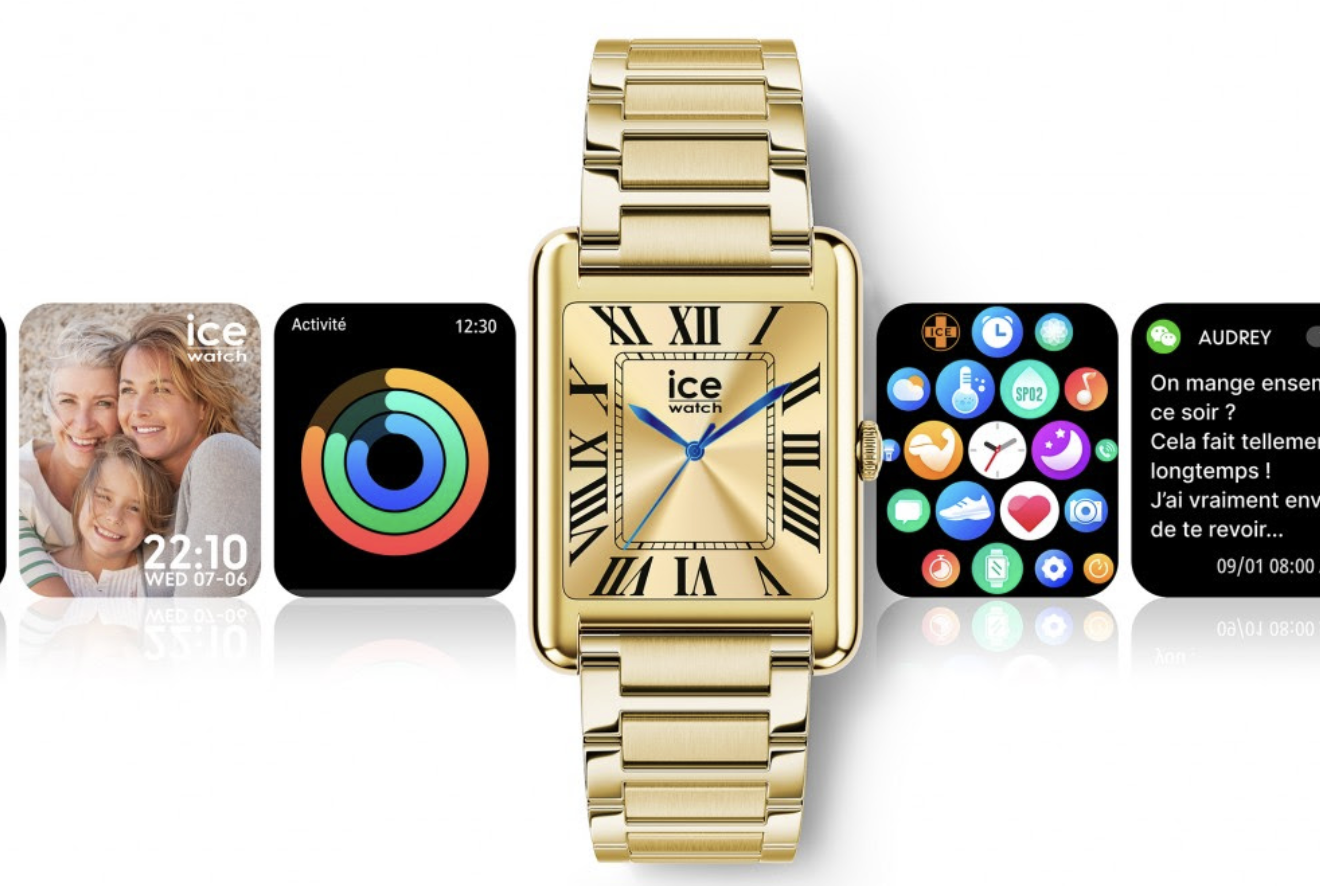 L’ICE smart TKS 2.0 (169 € à 199 €) est déclinée en huit modèles sophistiqués avec six écrans personnalisables. Design délicatement rectangulaire, cadran vintage rythmé de chiffres romains, aiguilles glaive et trotteuse qui évoluent comme celles d’une montre mécanique : l’ICE smart TKS 2.0 s’amuse à être le parfait sosie d’un garde-temps raffiné. Sa boîte, galbée dans l’acier, abrite néanmoins l’ensemble des fonctionnalités connectées pratiques et utiles. La technologie intelligente s’y fait ultra discrète, voire invisible lorsque les informations s’affichent, à la demande, sur l’écran du smartphone.