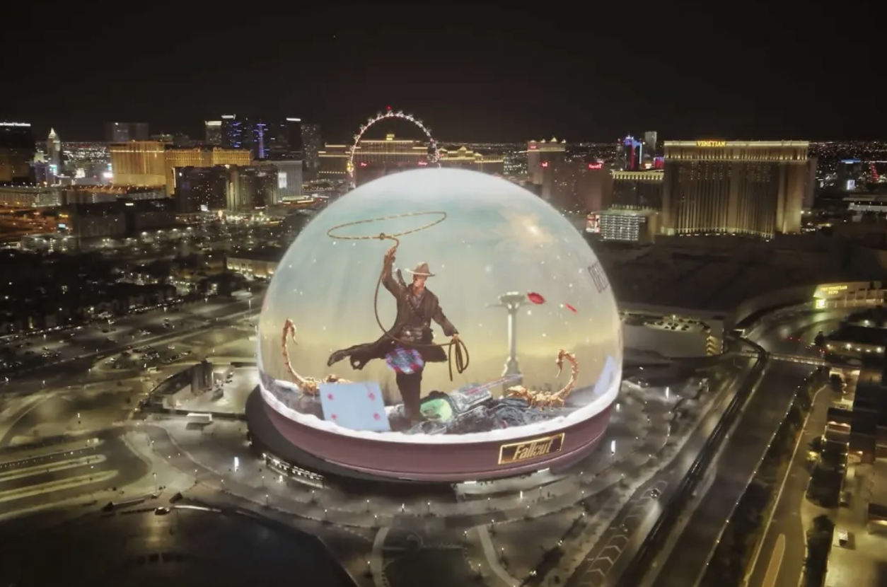 Cette diffusion anticipée avance la première de 24 heures. Elle s’inscrit dans le cadre d’une collaboration avec l’attraction Exosphere de Sphere à Las Vegas, dans le Nevada. Le drame post-apocalyptique se concentrant sur la colonie fictive de New Vegas dans la nouvelle saison, cette collaboration est tout à fait pertinente. Amazon explique que cette collaboration donne vie à un élément du voyage de la saison vers New Vegas en transformant Sphere en une boule à neige post-apocalyptique mettant en scène les personnages préférés des fans : Lucy, Maximus et la Goule, et surprenant par la présence d’un Deathclaw monstrueux tentant de percer l’Exosphère.