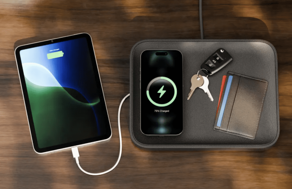 Pour tout appareil incompatible avec le Valet ou ne prenant pas en charge la recharge sans fil, un port USB-C intégré vous permet de brancher votre Kindle ou votre chargeur Apple Watch et de recharger tous vos appareils simultanément.