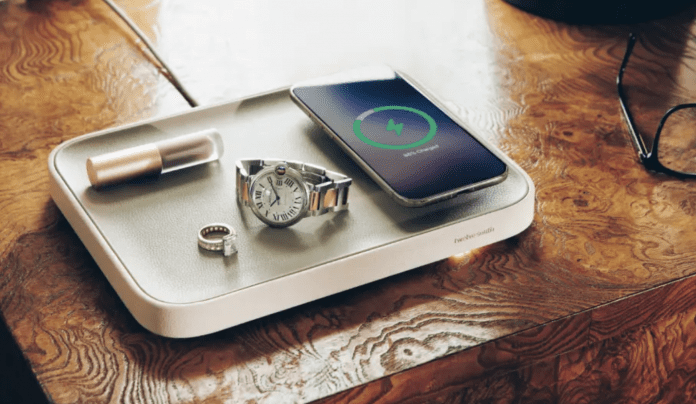L’élégant vide-poches Twelve South Valet garde vos appareils électroniques chargés et bien rangés.