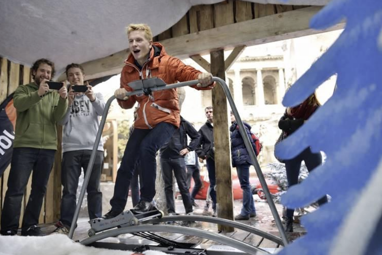 Le simulateur connecté Pro SKI Fit 360 « made in France » fait skier quotidiennement le public du parcours de la flamme Olympique et fera skier tout Milan pendant les Jeux Olympiques !