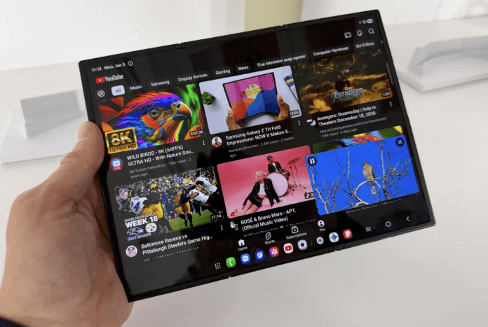 Samsung a annoncé la disponibilité du Galaxy Z Tri-Fold aux États-Unis, à un prix tout simplement hallucinant. Ce nouveau smartphone pliable, doté d’un écran externe qui se déplie pour révéler trois écrans internes supplémentaires et former une tablette, sera disponible aux États-Unis à partir du 30 janvier.