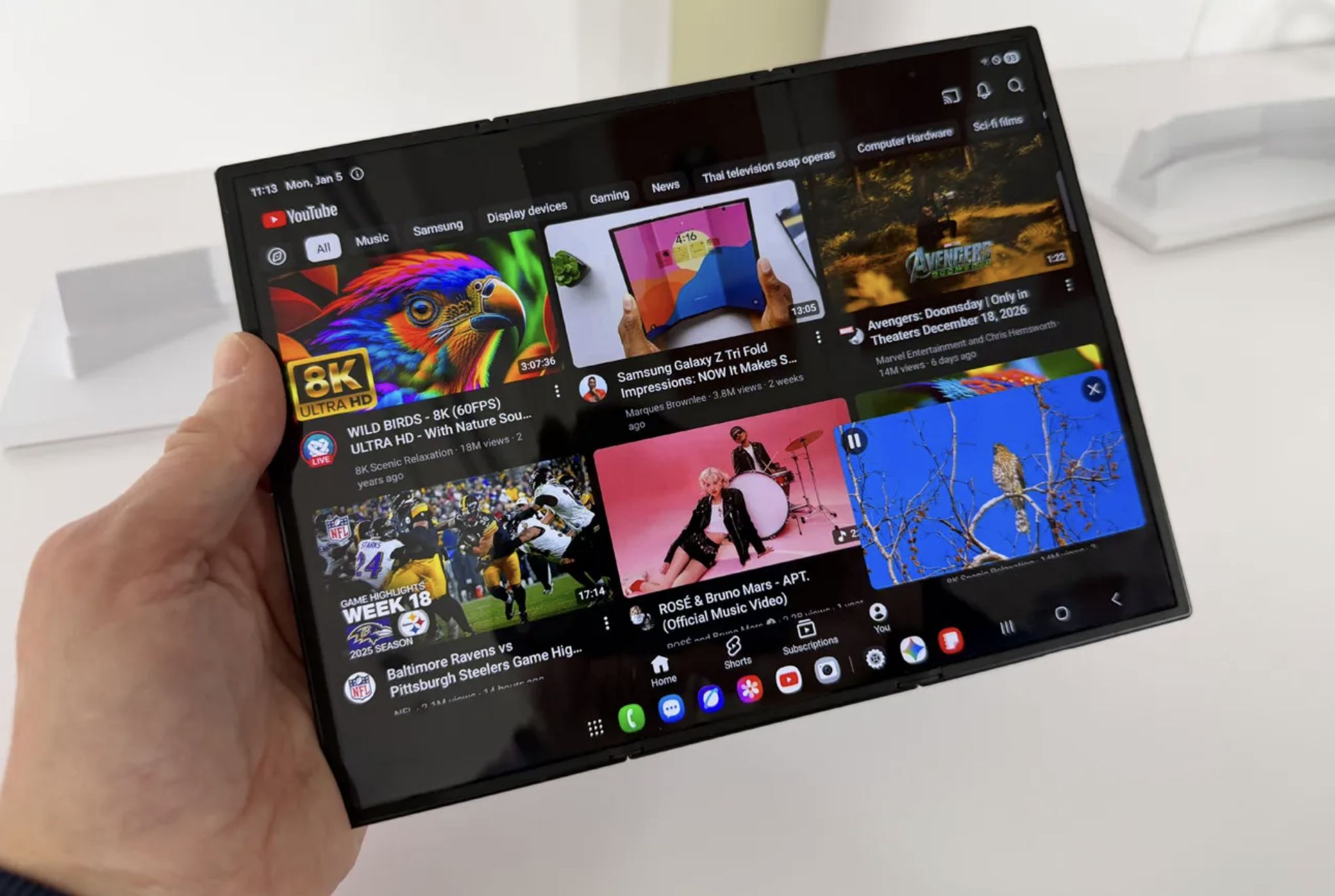 Bien sûr, il ne s’agit pas d’un smartphone ordinaire. Ces écrans coûtent très cher à produire et ont été conçus spécialement pour cet usage. Quant aux charnières, elles ont également été fabriquées sur mesure pour le tout premier téléphone à trois volets de Samsung. Ce cadre de 3,9 mm (à ses points les plus fins) n’a pas été obtenu du jour au lendemain. Samsung ne s’attend pas à en vendre beaucoup. La production est d’ailleurs limitée. Payer plus cher pour un téléphone qu’un MacBook Pro M4 haut de gamme peut paraître excessif, mais il ne faut pas trop s’en plaindre. Si ce smartphone doit trouver son public, il le trouvera.
