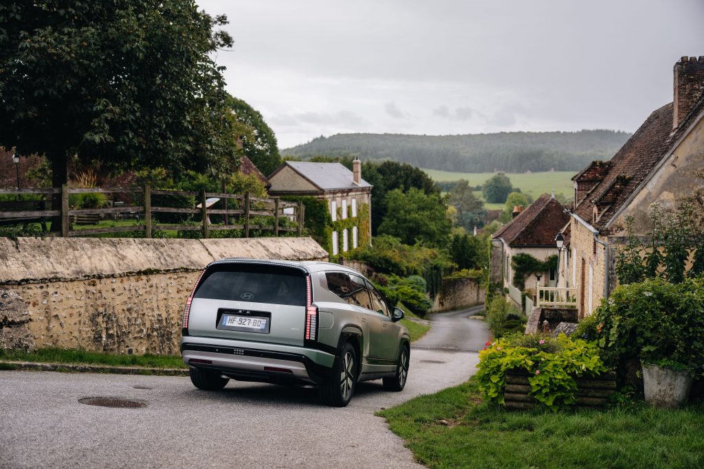 Une fois en route, on retrouve bien entendu la douceur et la sérénité propres aux autos électriques. Avec les 428 ch et 700 Nm, et malgré les plus de 2,6 tonnes de l’auto, les performances sont au rendez-vous, avec des reprises instantanées, ce qui permet une vraie aisance sur la route. En ville, le gabarit de l’auto est conséquent, mais elle se manie néanmoins du bout des doigts ; tout juste regrette-t-on quelques trépidations de suspensions sur les petites irrégularités (le poids et les grandes roues n’aident pas, car ensuite, sur la route, la suspension amortit plutôt bien). Sur la route, la Ioniq 9 démontre une réelle aisance à avaler des kilomètres, faisant valoir une impressionnante maîtrise des bruits de roulements, un excellent confort de sièges. Bref, une auto à vivre ; sur un essai réalisé par un temps frais, j’ai consommé 25 kWh en moyenne, soit une autonomie un peu supérieure à 420 km, au lieu des 600 annoncés. Rien d’étonnant…