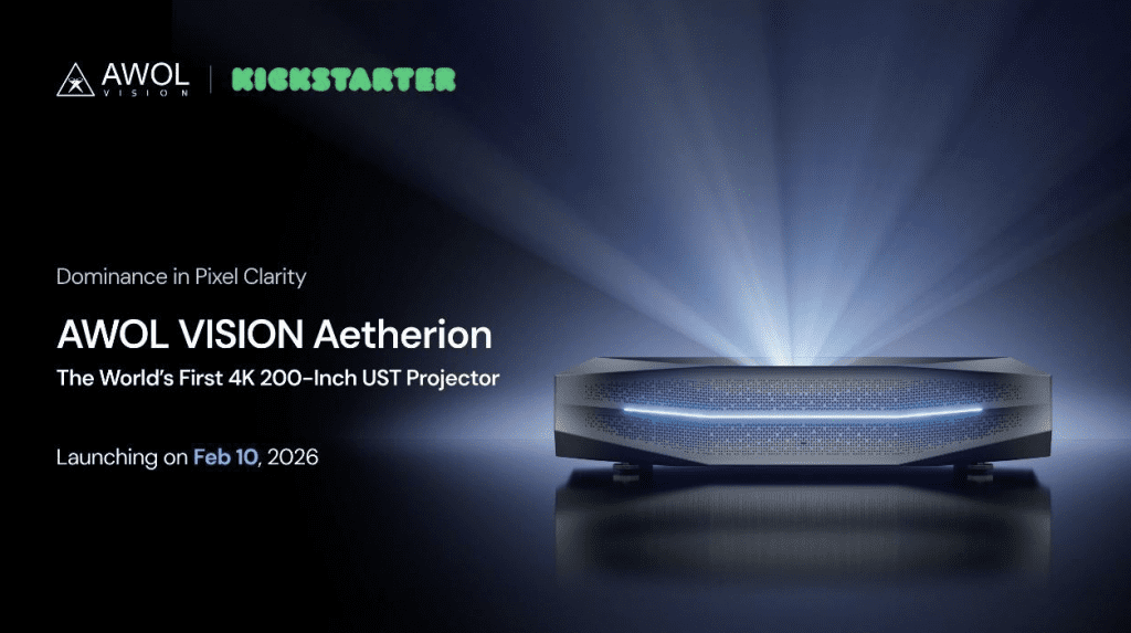 AWOL Vision annonce aujourd’hui que sa très attendue série de projecteurs Aetherion, dévoilée pour la première fois au CES 2026, est désormais disponible à la commande via Kickstarter, offrant aux premiers contributeurs la possibilité d’économiser jusqu’à 2300 dollars sur le prix de vente au détail tout en passant à ce qui est largement considéré comme le projecteur 4K triple laser à ultra-courte focale (UST) à l’image la plus nette au monde. Des remises substantielles s’appliquent également aux offres groupées exclusives Kickstarter, avec des réductions pouvant atteindre 5 497 dollars (58 % de réduction).
