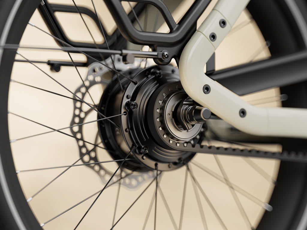 La batterie intégrée de 504 Wh (36V, 14Ah) annonce jusqu’à 100 km d’autonomie (variable selon le poids du cycliste, le relief et l’assistance utilisée). Suffisant pour plusieurs jours de trajets urbains sans recharge. Autre point fort : la présence d’un capteur de couple. Contrairement à un simple capteur de rotation, il adapte l’assistance à la pression exercée sur les pédales. Résultat : une sensation plus naturelle, plus fluide, moins “on/off”.