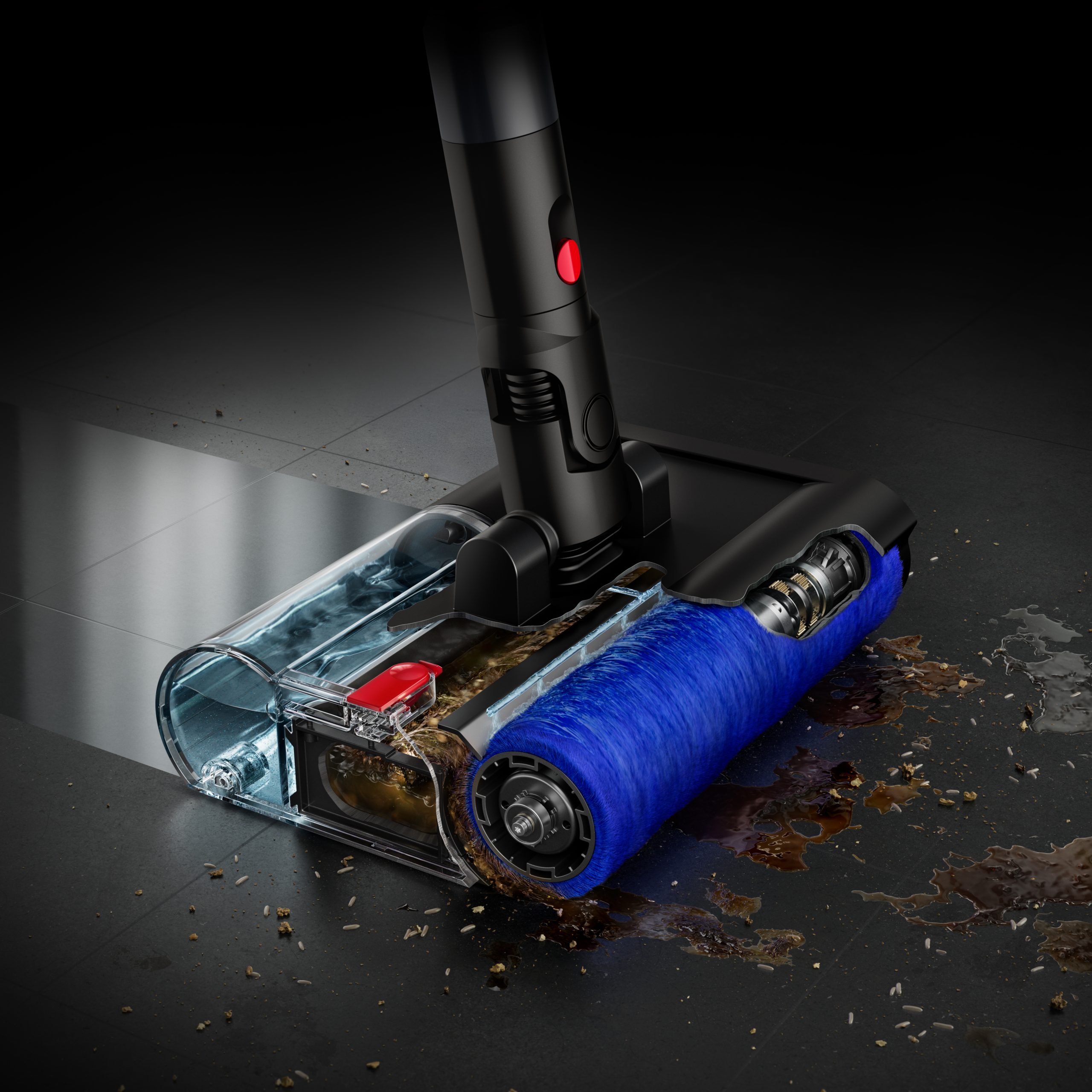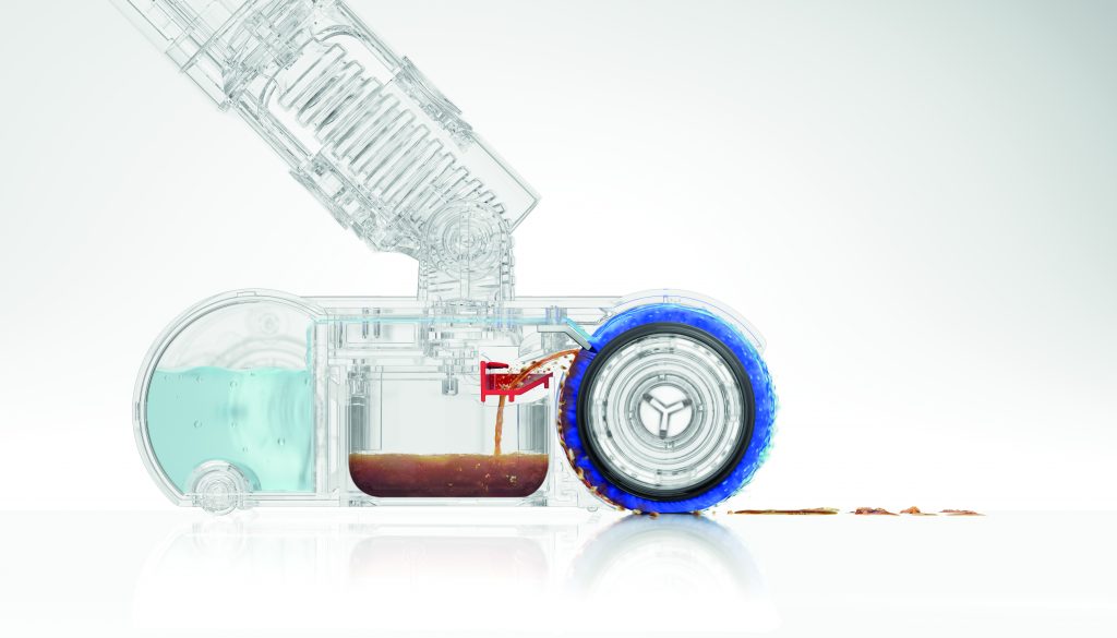 Dyson a également travaillé l’aspect hygiénique. À chaque rotation, l’eau sale et les débris sont extraits du rouleau. Le sol est nettoyé en continu avec de l’eau propre, ce qui évite de simplement étaler la saleté. Deux modes sont proposés : un mode quotidien pour l’entretien régulier et un mode plus puissant pour les taches ponctuelles.