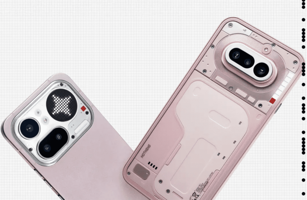 Mis à part le capteur principal, ce n’est pas trop différent du Phone 4a moins cher. C’est le téléphone Nothing le plus fin à ce jour, avec une coque monocoque en métal qui ne fait que 7,95 mm d’épaisseur. La finition en aluminium devrait résister aux traces de doigts et apporte une résistance IP65. Vous avez le choix entre les couleurs argent, noir ou rose. L’écran AMOLED de 6,83 pouces est ce qui se fait de mieux pour un téléphone portant le logo Nothing : il embarque une résolution 1,5K, un taux de rafraîchissement adaptatif de 144 Hz et une luminosité de pointe massive de 5000 nits. Les bordures font à peine 1,85 mm d’épaisseur et il dispose d’une protection Gorilla Glass 7i, tandis qu’un lecteur d’empreintes optique se cache en dessous. La puissance provient d’un Snapdragon 7 Gen 4, couplé à soit 8 Go de RAM et 128 Go de stockage, soit 12 Go et 256 Go. Il existe également une version réservée à l’Inde avec 8 Go/256 Go. Les vitesses de la mémoire et du stockage sont toutes deux plus élevées, ce qui devrait lui donner un léger avantage de performance par rapport au Phone 4a (qui utilise une puce Snapdragon 7s Gen 4). La batterie de 5080 mAh et la vitesse de charge filaire de 50 W sont alors identiques à celles du Phone 4a.