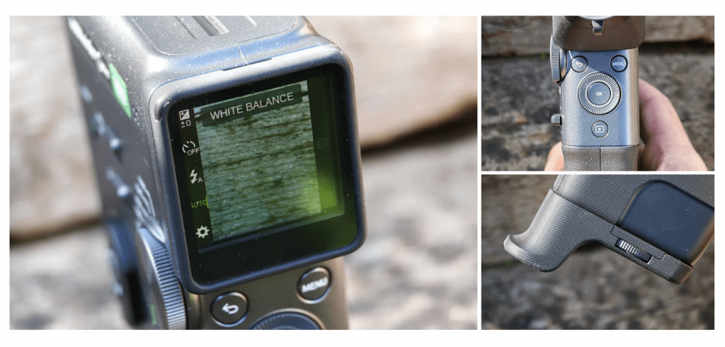 C’est un appareil fantastique à prendre en main, avec tous les boutons à portée de doigt. Du moins, si vous êtes droitier ; en tant que gaucher, on a dû régulièrement me forcer à changer de main. La poignée étant un peu courte, il est vivement conseillé d’installer l’extension vissable incluse. Elle utilise le filetage 1/4 pouce du trépied, mais cela ne m’a pas manqué : c’est un appareil clairement conçu pour une utilisation à la main levée.