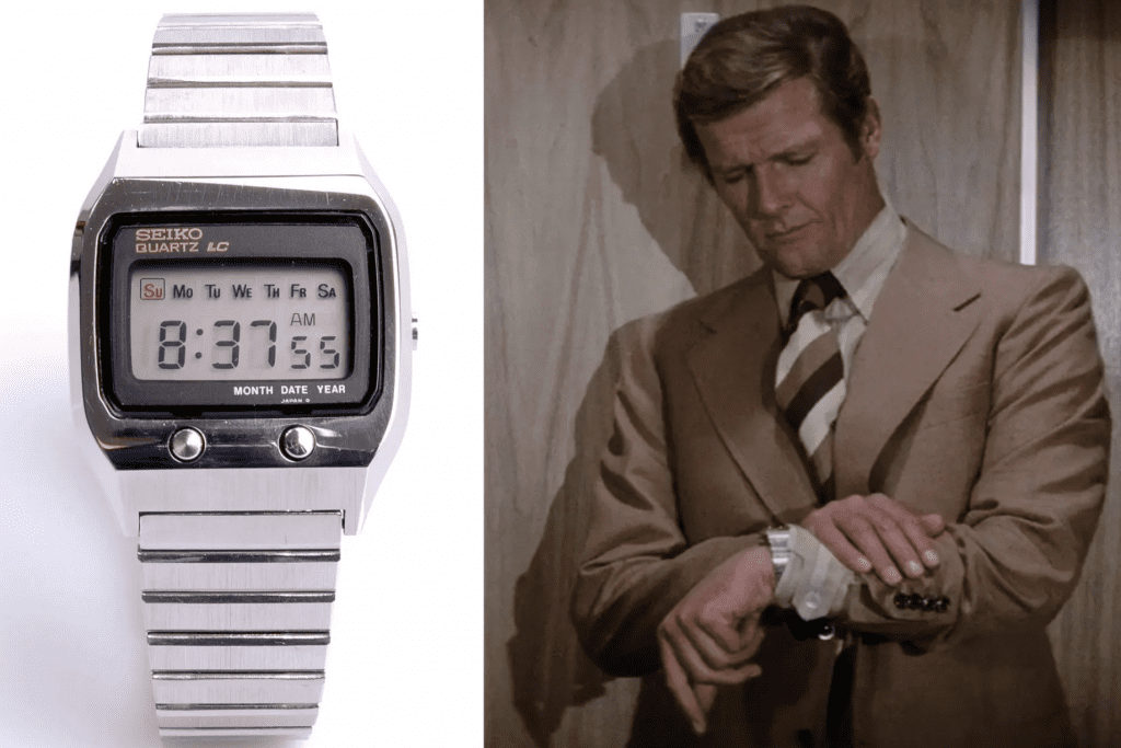 Autant nous aimons les Omega contemporaines de Bond, autant on ne peut pas se tromper avec un peu de technologie kitsch de l’ère Roger Moore. Un moment fort pour nous est la Seiko 0674 5009 Quartz LC du film L’Espion qui m’aimait (1977).